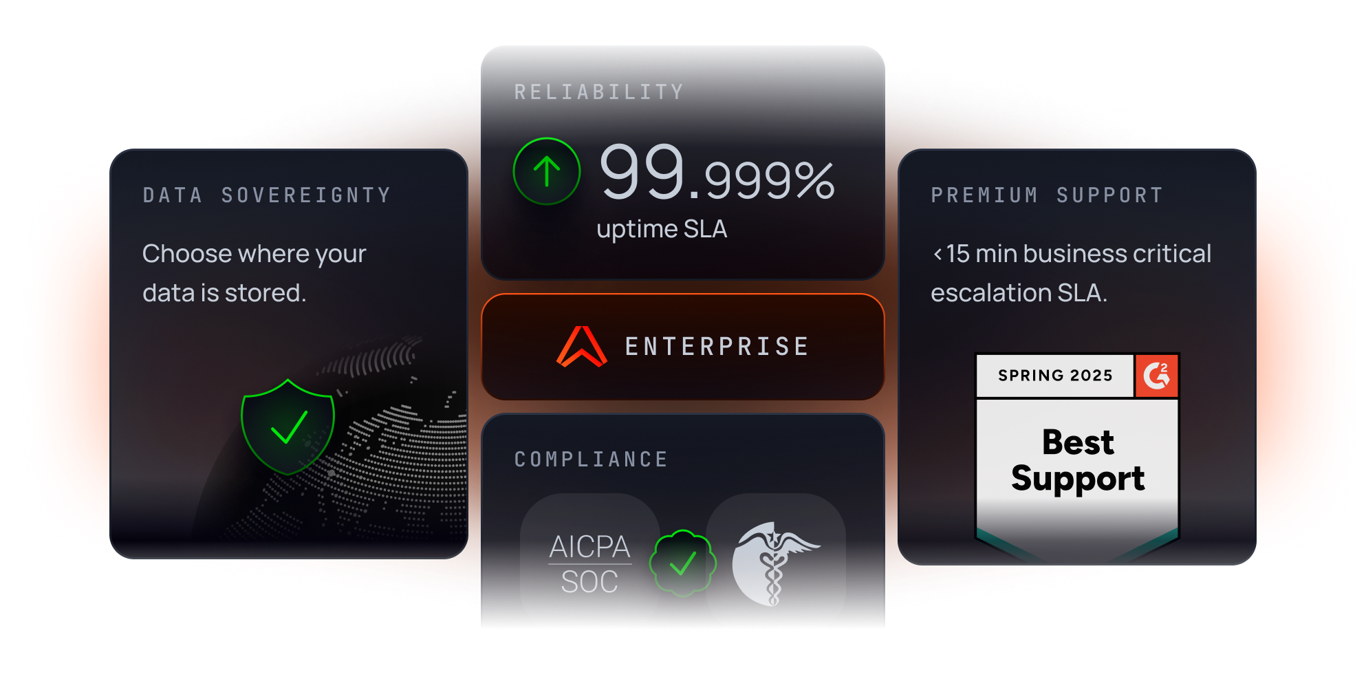 - Proven compliance: Certified for SOC 2 Type II, ISO 27001, HIPAA BAA, GDPR, and CCPA.
