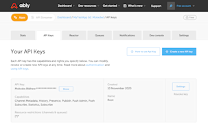 API key authentication The simplest way to authenticate. Involves using private API keys that you can usually create and edit via a dashboard. Recommended to be used server-side, as private API keys shouldn’t be shared with untrusted parties. | Explore Ably's implementation of API key authentication | |
