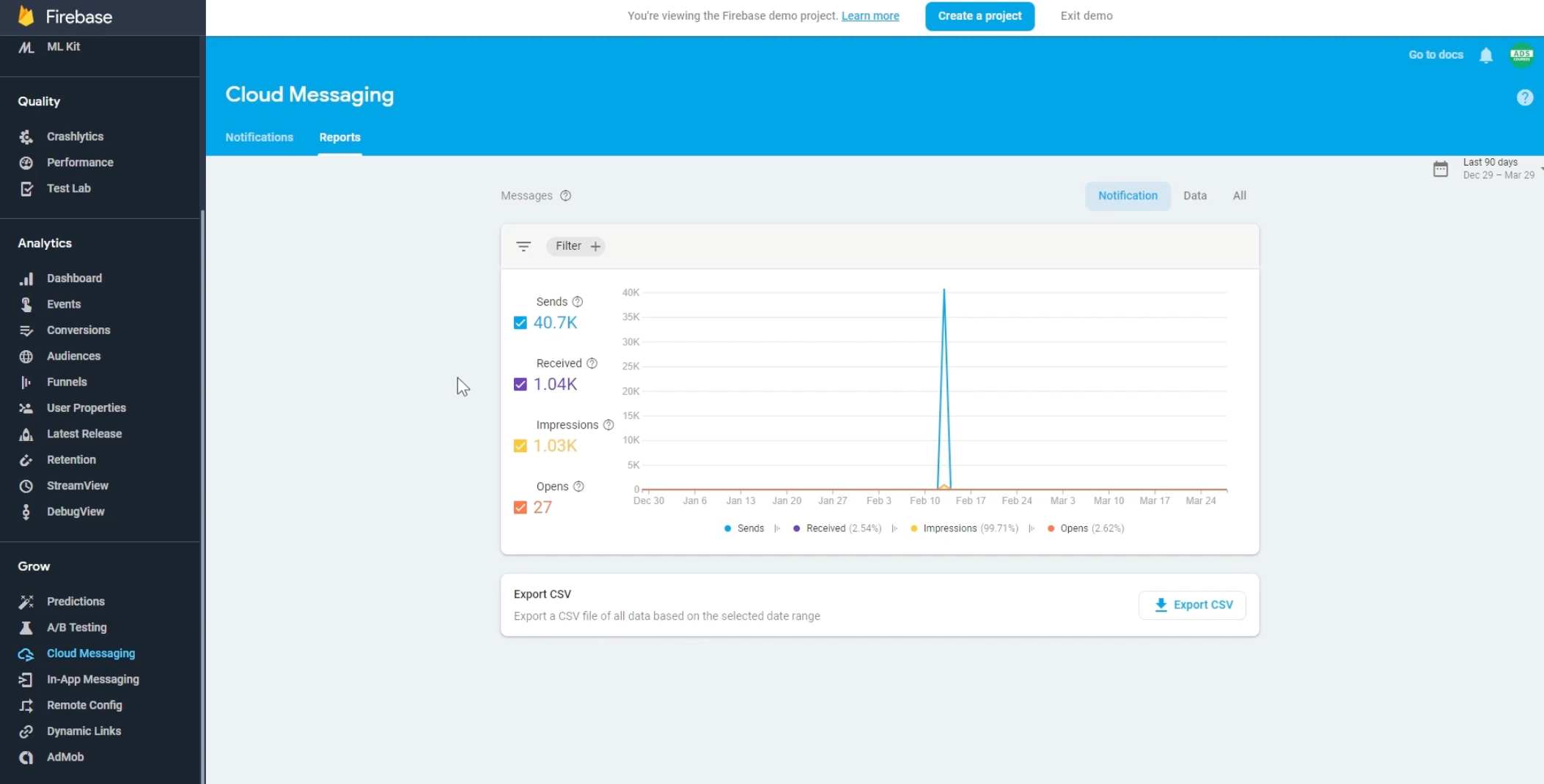 Dashboard or dev console Reviewed by 3+ independent developers Sign up for free and explore Ably's pub/sub messaging platform | 4.67 / 5 Ease of use / 5 Stats and reports / 5 Functionality / 5 ![]() “The dev console has a wide range of features available, grouped into five main categories: Project Overview (basically your dashboard), Develop - where you handle everything from auth to storage and serverless functions invocation, Quality - where you can view crash reports and latency stats, Analytics - which includes various stats, including GA, and, finally, Grow - where you can do stuff like A/B testing. Navigation is intuitive, but all the functionality available can be a bit too much if you're new to Firebase, and it takes some time to be able to master it all.” | 1 / 5 Ease of use / 5 Stats and reports / 5 Functionality / 5 ![]() N/A |