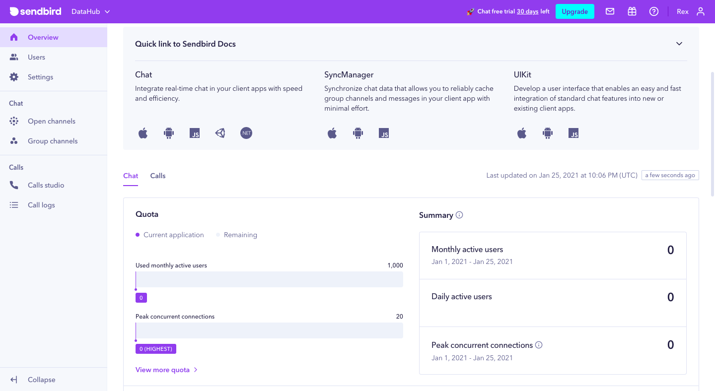 Pricing model How are the Parse server and Sendbird pricing models calculated? Explore Ably's pricing model for our pub/sub messaging platform | N/A | Pricing is divided into two categories: Sendbird Chat and Sendbird Calls. Sendbird Chat is $399/month |