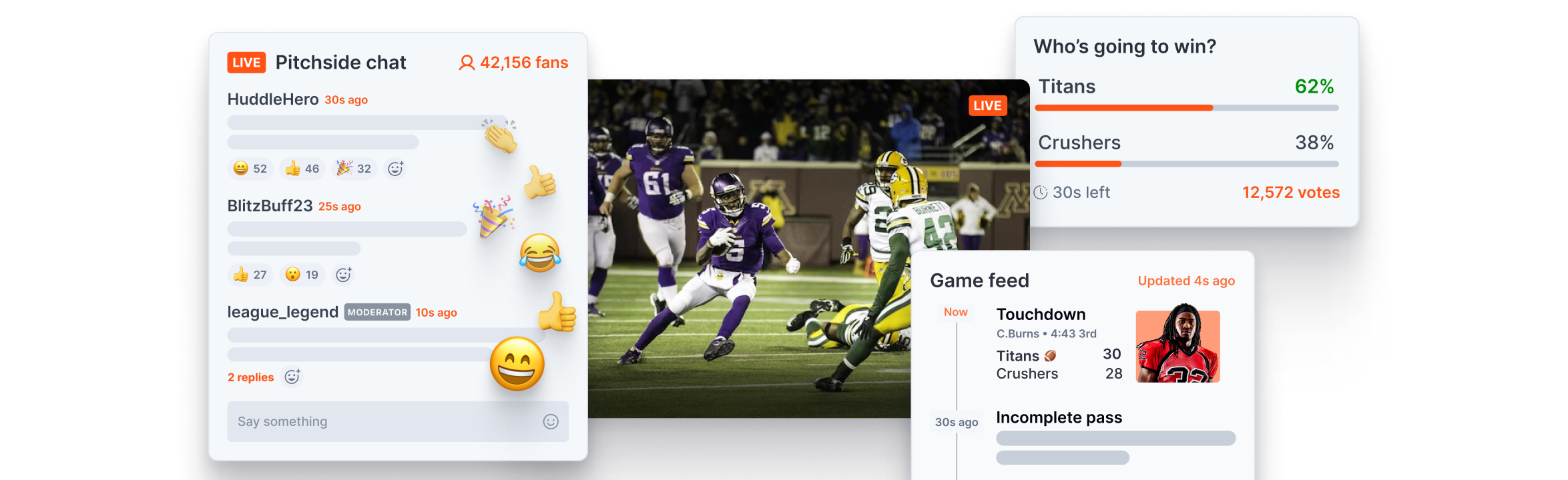 If you’d like to explore how Ably can support your next livestream or fan experience, we’d love to talk. Get in touch with us to book a session with one of our sales engineers and see how Ably can help bring your vision to life.