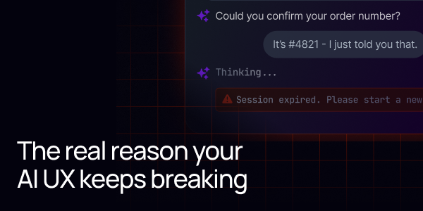 Your users are losing context mid-conversation. Your agents are going silent with no crash signal. Your support handoffs are dropping state. This isn't a model problem. It's a session layer problem - and most teams are building around it, not through it.