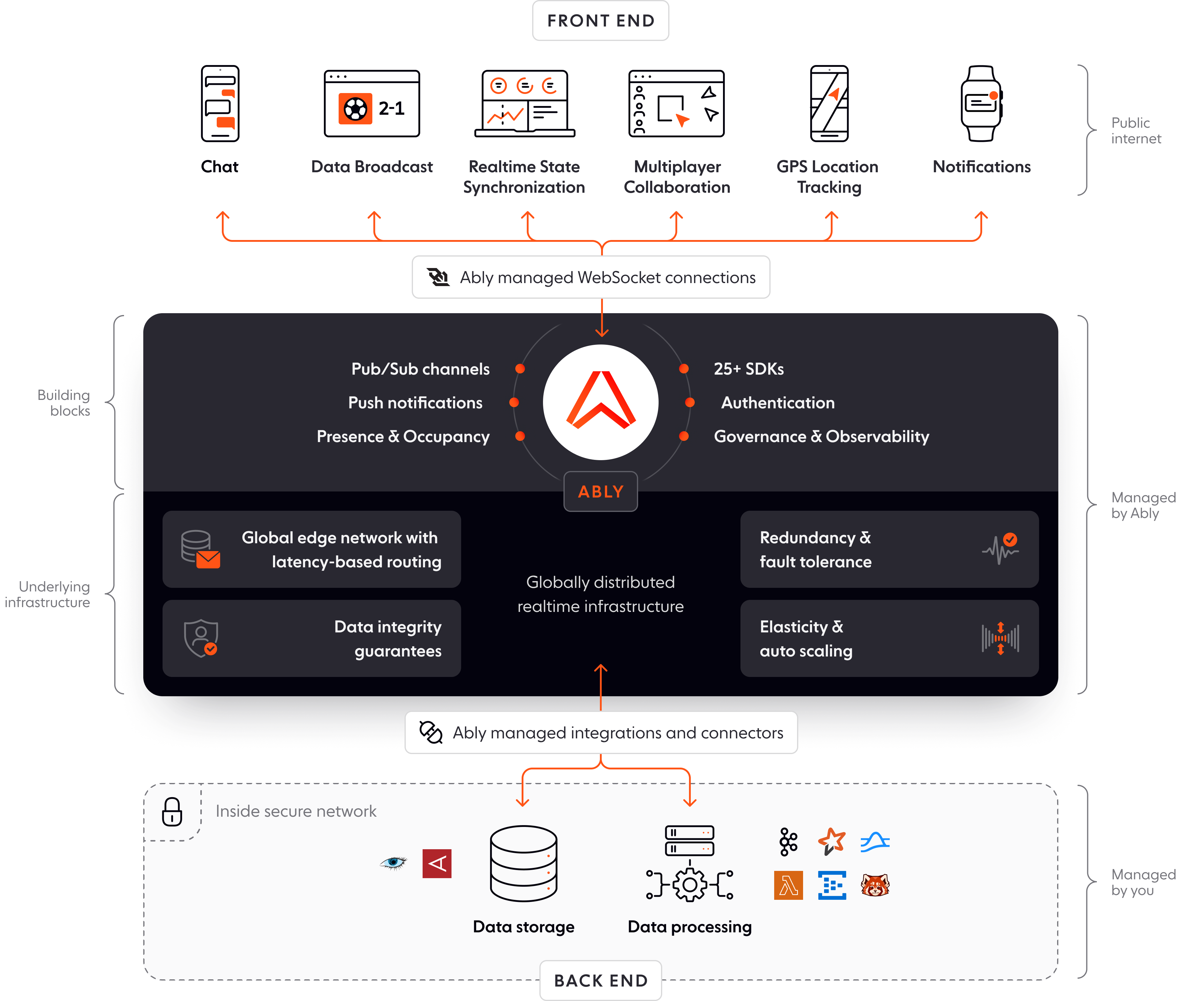 With Ably, developers can build realtime capabilities without needing to manage things like scaling, latency, data integrity, and network outages because the infrastructure part is all managed for you.