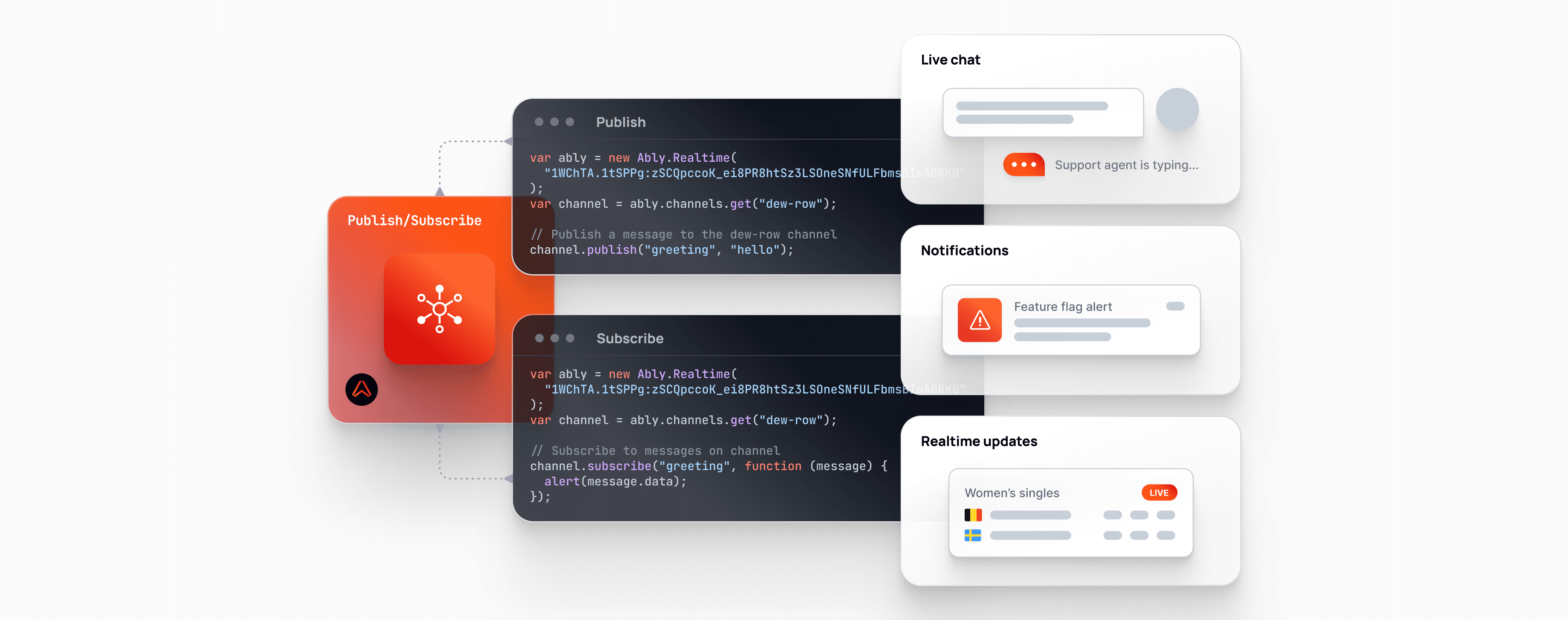 Similar to notifications, realtime updates also degrade rapidly with time. For sports fans, for example, a realtime application that keeps track of a game’s score can be compelling and exciting, whereas an application that promises the same but delivers updates minutes after a score is made is disappointing. Tennis Australia, the company that manages the Australian Open, uses Ably to broadcast live updates throughout its widely watched matches. During the 2022 tournament, Tennis Australia used Ably to send over nine billion messages to over one million users.