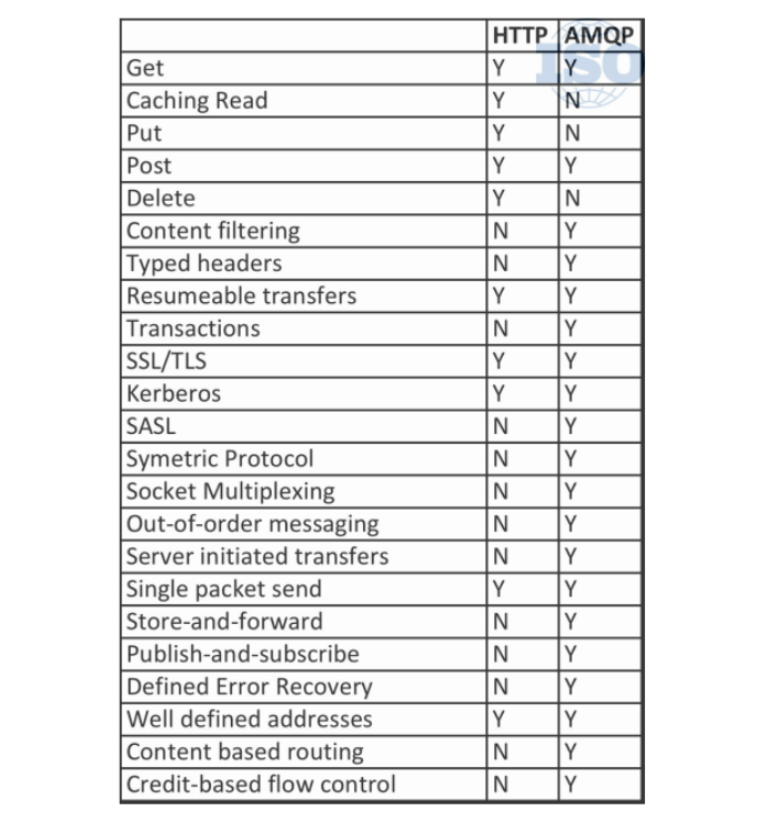 AMQP is a superset of the semantics needed to implement APIs like JMS (the de-facto Java API standard for store-and-forward and pub-sub messaging), as well as any other such implementations in any other language on any OS and on any platform. By design, any AMQP-compliant implementation can talk to any other, with support for the following core messaging patterns: