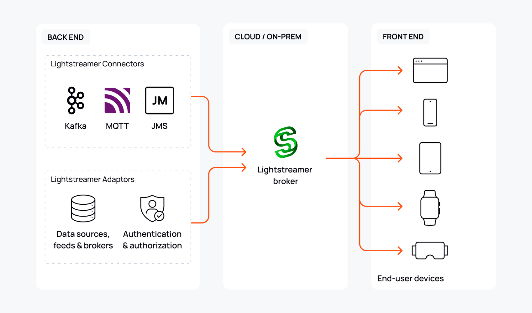 Lightstreamer is a managed message broker designed to stream high-frequency data updates from a central server to multiple clients. It is often used in financial services, sports data feeds, and other high-scale applications where high throughput and bandwidth efficiency are priorities.