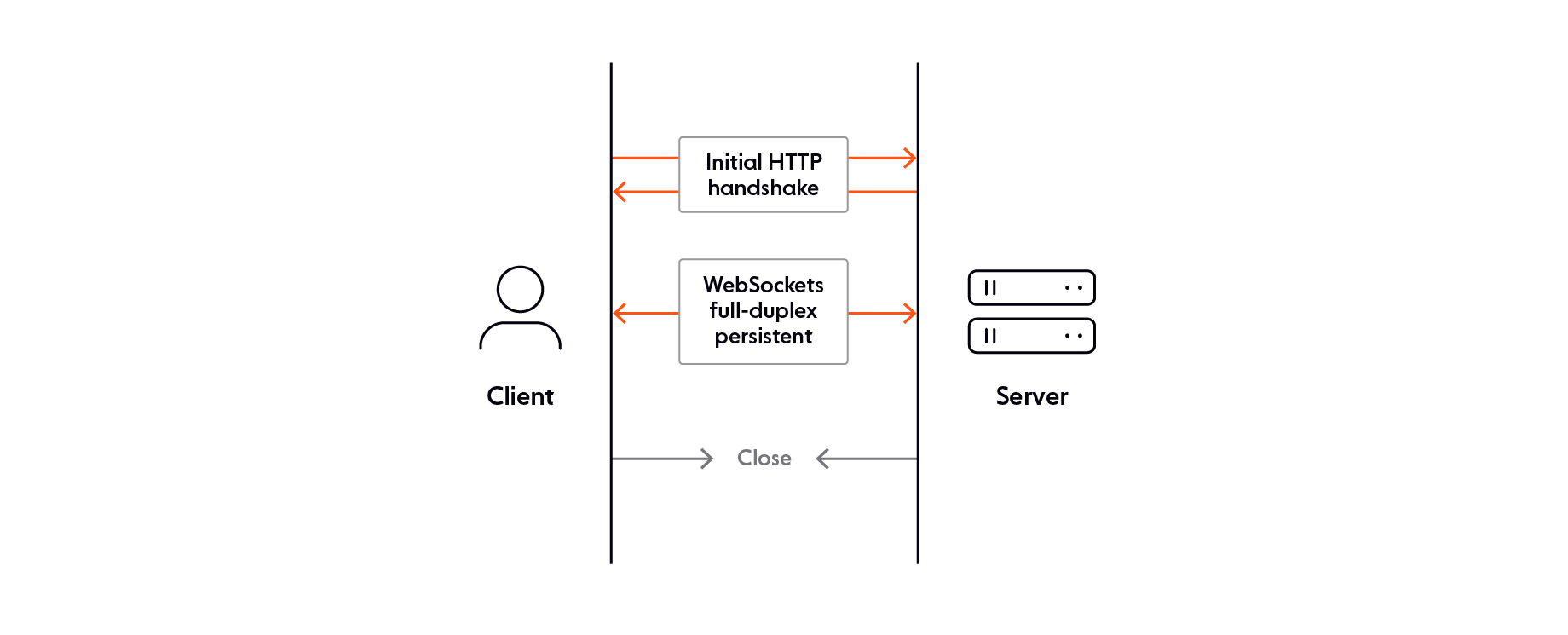 Minimal data transmission overhead. Unlike HTTP-based realtime mechanisms (such as HTTP long polling), the WebSocket protocol uses persistent connections rather than a continuous HTTP request/response cycle. WebSockets require less bandwidth and provide lower latency compared to HTTP, reducing the load on both the client and the server. See how WebSocket compares to long polling.