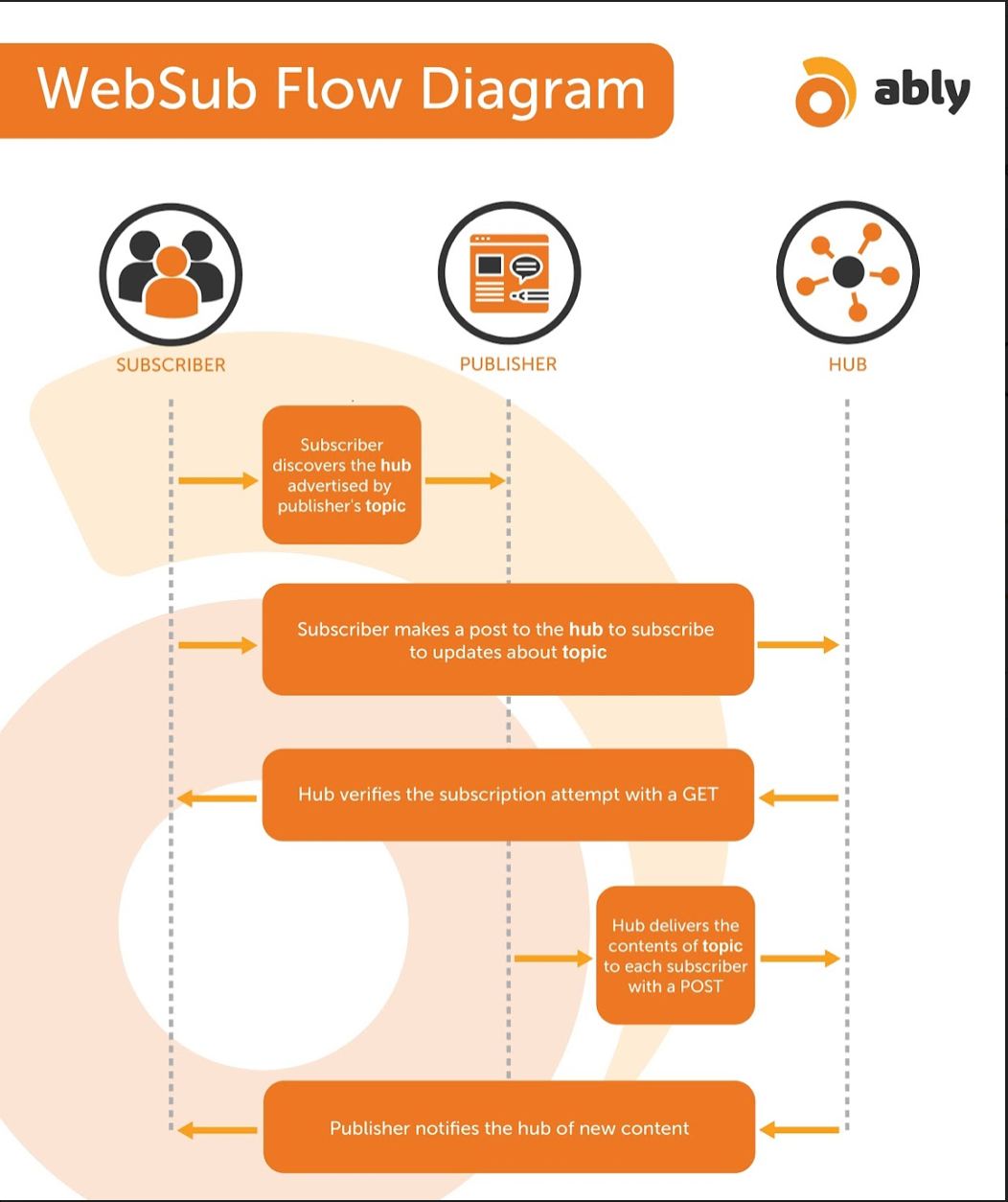 According to W3C WebSub: “WebSub provides a common mechanism for communication between publishers of any kind of web content and their subscribers, based on HTTP webhooks. Subscription requests are relayed through hubs, which validate and verify requests. Hubs then distribute new and updated content to subscribers as and when it becomes available.”