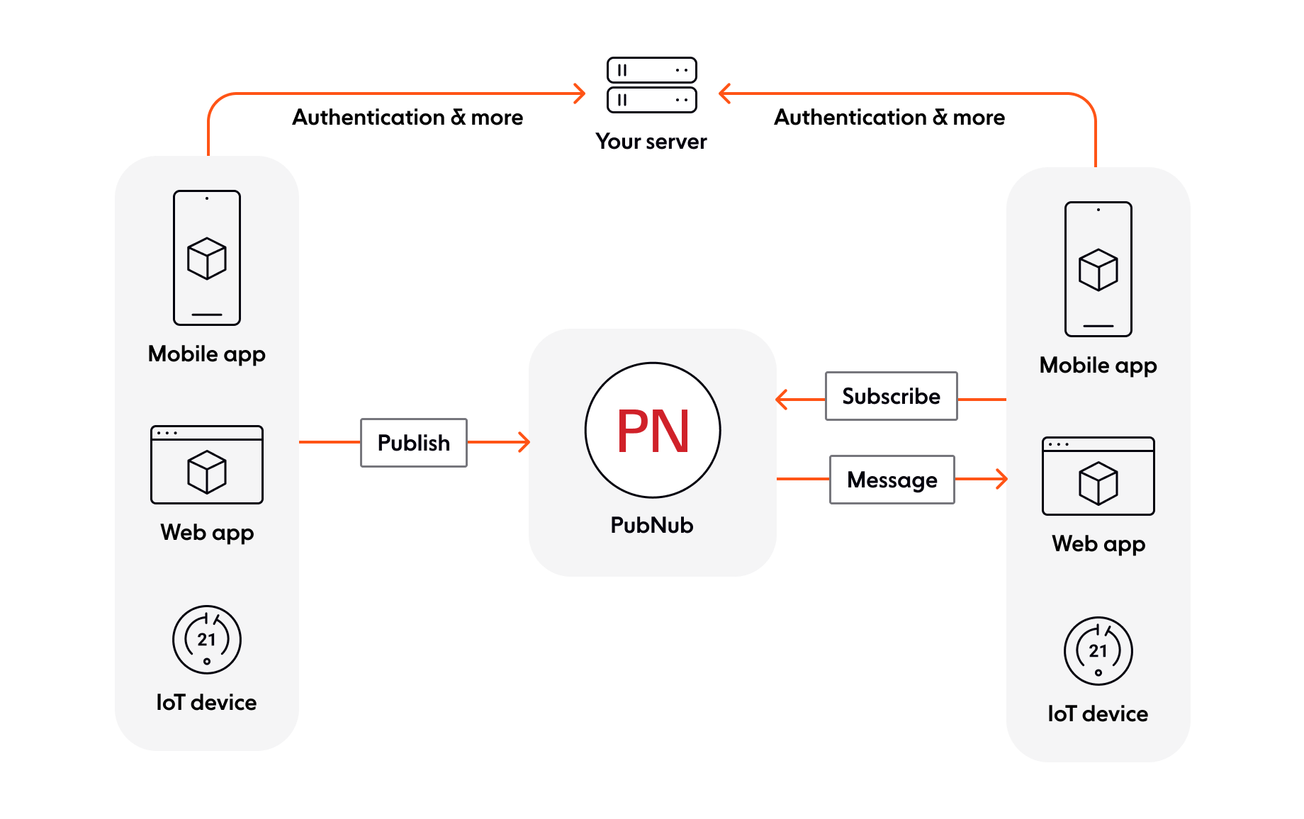 For more details including code examples, see the PubNub First Steps documentation.